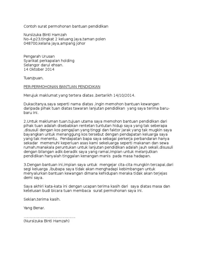 Surat Permohonan Bantuan Pendidikan Kepada Yb